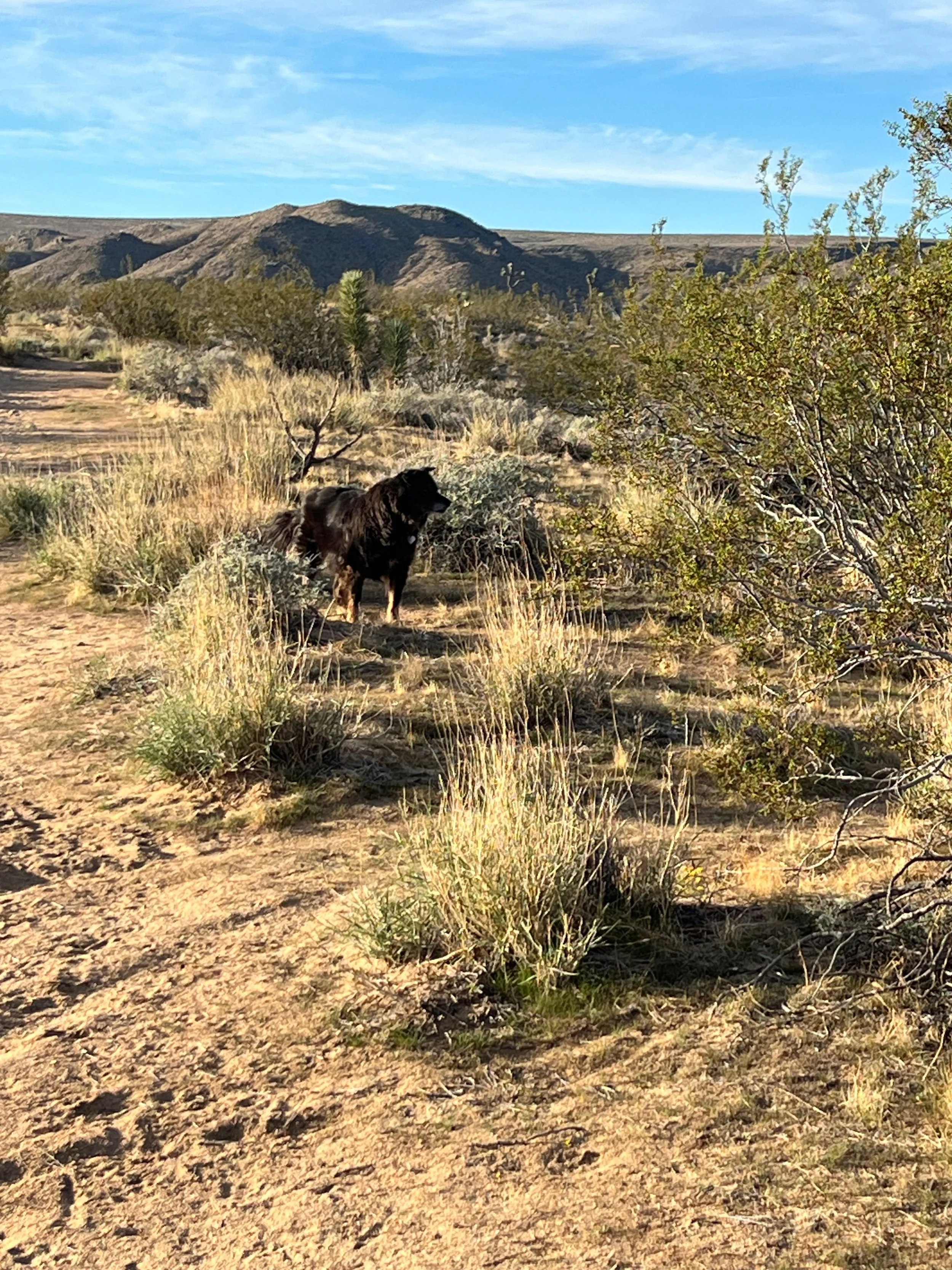 When I walk Jack out at Hondo Wash we no longer walk the path at the edge of the world for distance. We go so Jack can read his newspaper. Jack, is sixteen years old; he’s a border collie and coyote mix, bred for the genetic encoding of protecting a herd while innately, intuitively predicting predator behavior. He is my best friend and constant companion, and his needs are important to me. When he joined me fifteen years ago, covering three miles a day was easy for both of us. Now, distance is not the metrics. Time inspecting clumps of plants and blades of grass, of perusing and decoding each whiff, order and trace of any species having passed this way leaving their scent, their story, their deposit of life, fills the thirty or forty minutes of our daily ceremony out on the thin lip of desert mesa ridge. While Jack reads his paper, I read the sky, this color of the hills, the shadows stretched across the valley floor. My own internal newspaper unfolds as I imagine each section of the day clearly, pace by pace, moving through a sequence of time, sessions, ports of chores in town. What am I hungry for? What is important today? What wants my attention? What words want to land on the page?